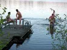 Siinä sitten isännälle annettiin tietty puheenvuoro ja Pekka oli suunnitellut, että alkuillasta vähän vuokraksi niinsanotusti autellaan isäntää työvoimaa vaativissa kesähommissa. Laiturin korjausryhmään kuuluivat Pekka itse, Reijo ja Timo. Liiterihommiin pääsivät Antti, Petteri ja
