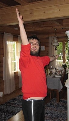 Kohta olivat Kimmo ja KP:kin valmista kauraa pehkuihin. Kello näytti (tää on varma tieto!) tässä vaiheessa 00.24. Pojat siitä pisulle, pesulle ja nukkumaan, kukin omaan kaupunkiinsa… eikun huoneeseensa. Jukalle varattiin yläkerrasta takavasen, Kimmolle keskilukaali ja KP valtasi alakerran huoneen. Jukka jatkoi iltaa ”perinteisesti” saunomalla pitkään ja hartaasti, yksin ja umpihumalassa. Viimeiset varmistussoitot kullalle kotipuoleen soiteltiin 04 maissa ja oli aika mennä allekirjoittaneenkin pitkäkseen. Ensin ”piti tietenkin” mennä pesemään hampaat (vaikka harjoittelu kertoo toista…) ja tökkimään hammasharjalla takahampaitten läheltä itselleen ”norjanpuhumiskeikka”. Tämän Kimmo aamulla tunnusti kuulleensa, että ”tais olla paha olo…” No ei siis niin paha miltä kuulosti, tuttua huttua moinen oksentelu ja nytkin itseaiheutettua, ei suinkaan alkoholin vikaa…
